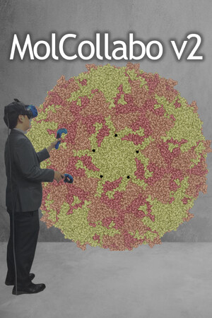 MolCollabo is software that enables the 3D display of biomolecules on a HMD, allowing for a VR experience. By connecting VR spaces through network communication, the displayed molecular structures can be shared and viewed by multiple people, including those in remote locations.